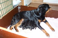 Färg: Hundar med vita fläckar eller hundar som saknar den för rottweilern typiska svarta pälsen med röda tecken.